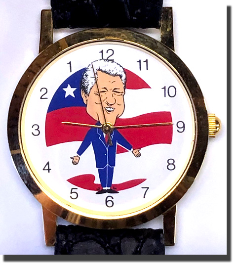 I remember these being advertised on television, but it was after Clinton's term in office. I don't recall how I got it; I never liked Clinton and even though it runs backwards and it's a character watch, I never felt compelled to get it. Still in my collection and I'm happy to have it anyway.