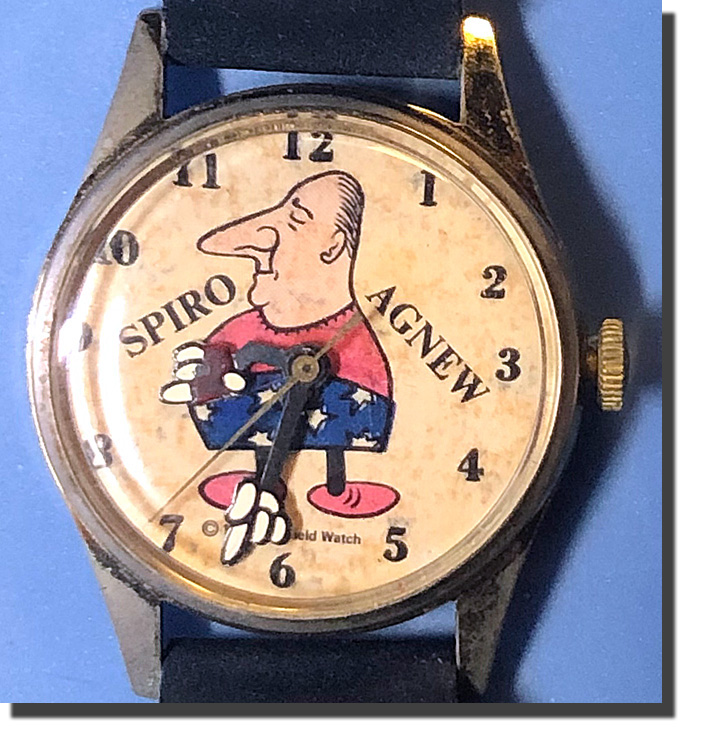 In the early 70s there was character watch fad for political figures, particularly Spiro Agnew. The original was from the Dirty Time Company, but there were others, like this one.