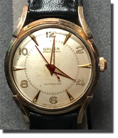 Might be my prettiest Gruen. I love the art-deco design. It's got a gold-tone case and face marks that think are particularly attractive.
