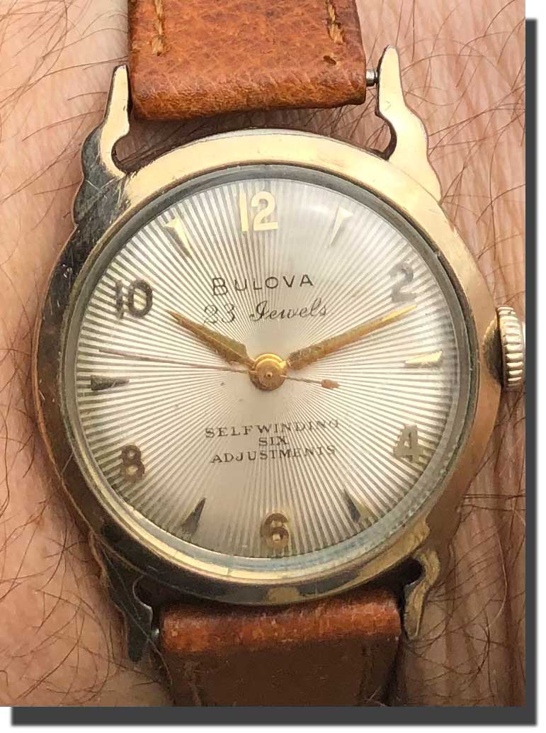 This one has "six adjustments", which I believe means that it runs accurately in any orientation, which makes sense for a 23-jewel watch.