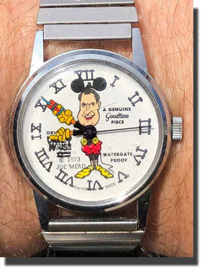 In the early 70s there was character watch fad for political figures. I believe it began with Spiro Agnew, but Nixon was a favorite. Mel Blanc said in his autobiography that he had a Nixon watch where the eyes shifted back and forth as it ticked.