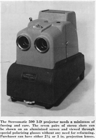The Automatic 500 3-D projector ($119.50) is probably the simplest of all stereo projectors to operate. It has a 500-watt lamp,