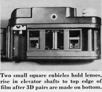 describes the Sawyer's View-Master Personal Stereo system. The camera is unique, the method of mounting the stereo pairs is unique,