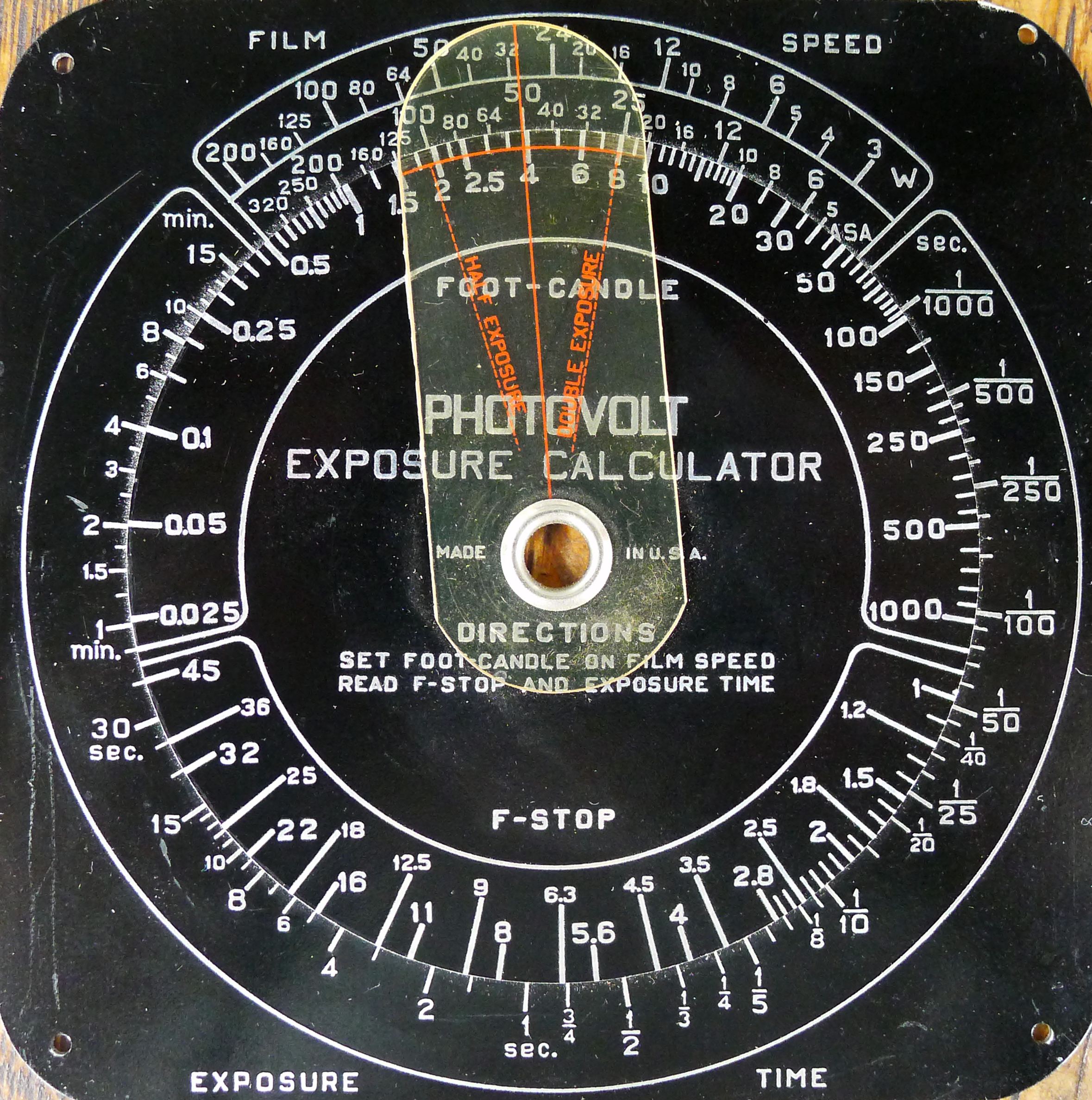 It appears, if you look at the card, that the meter is calibrated directly in footcandles. If that's true, you can use a lot of other meters' calculators to do the job, like any of the Weston Masters. If you were really serious about using this thing, you would get a known accurate meter and simply do a comparison at various light levels. If the 200M says it's reading 25 footcandles, what does your known-good meter read? What about 50 footcandles? 100 footcandles? Once you have the corresponding numbers, you can use the known-good meter's calculator dial to work out camera settings. Nice meter. Some day I hope to find the exposure calculator card for it. |
