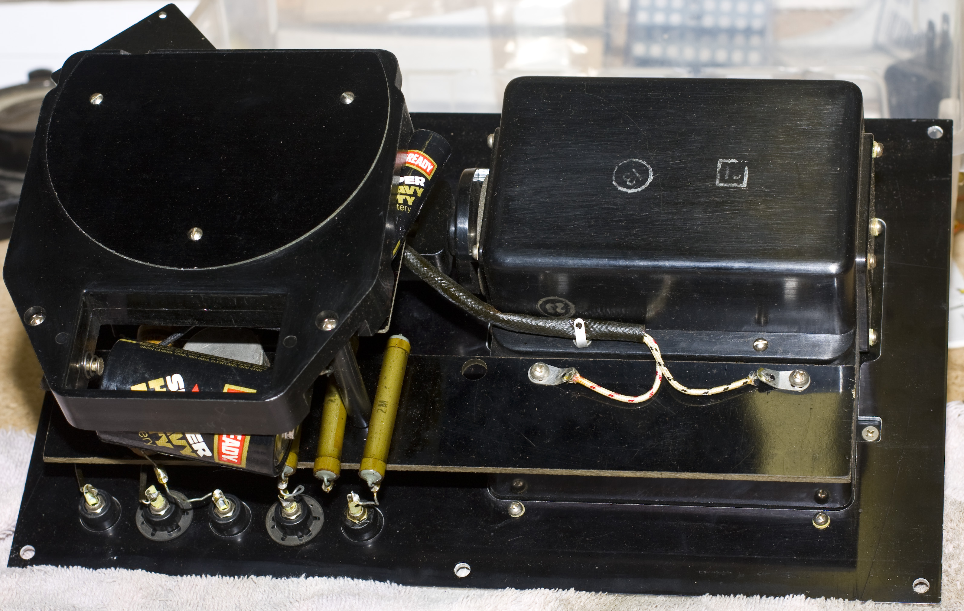 The battery here is an Everready 763, 22-½ volts. Can't get them anymore. When I had this out I saw someone wrote the date on it (1979). My DMM rates it at 22.5V, but I don't know what it'll really do under load.