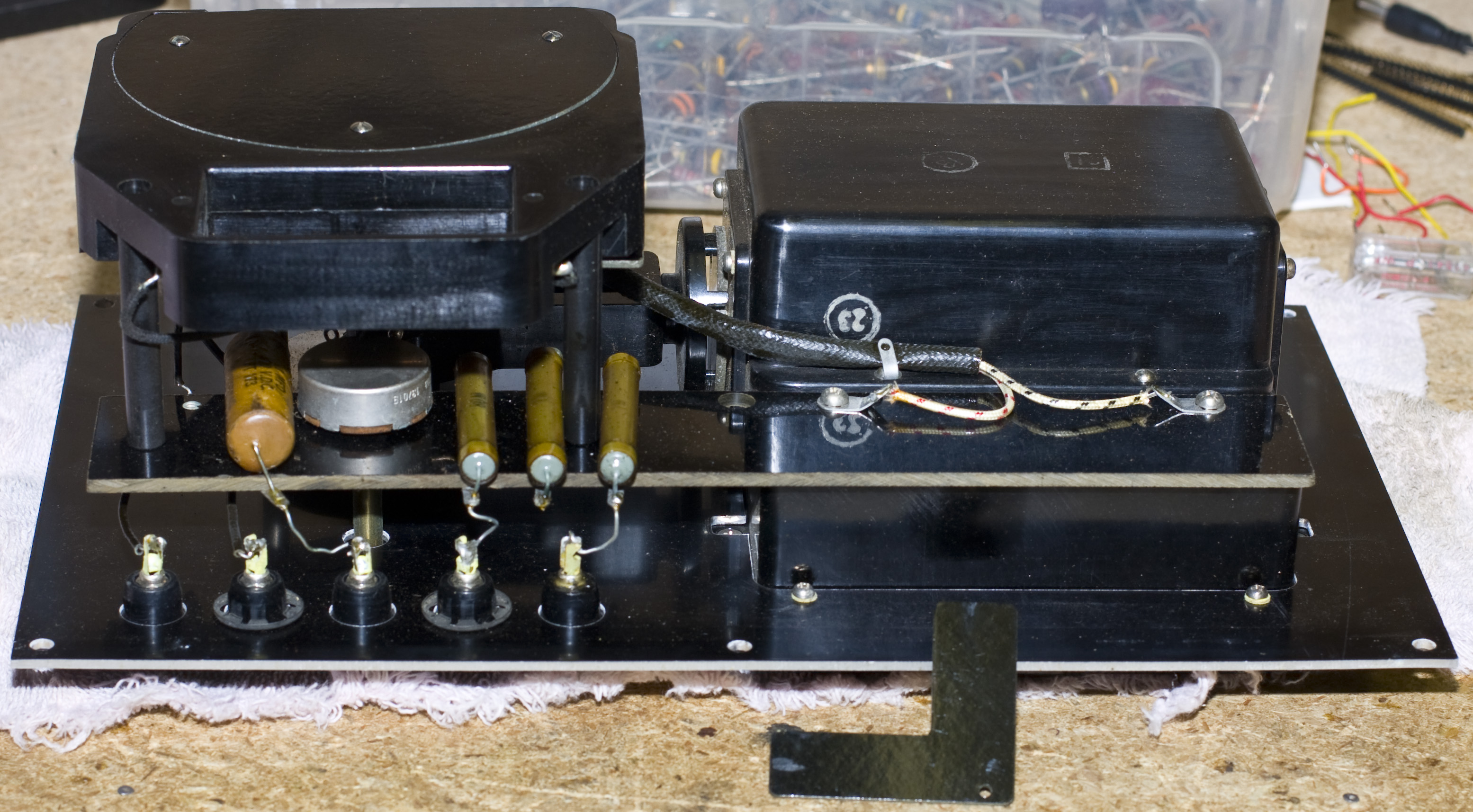 Here it is with the case off. The redhots are the precision resistors. This is the big difference between a 630-M and every other 630 variant—the other 630s have them hand-wired in a carousel around the switch. Phil's Old Radios has a nice photo to illustrate it.