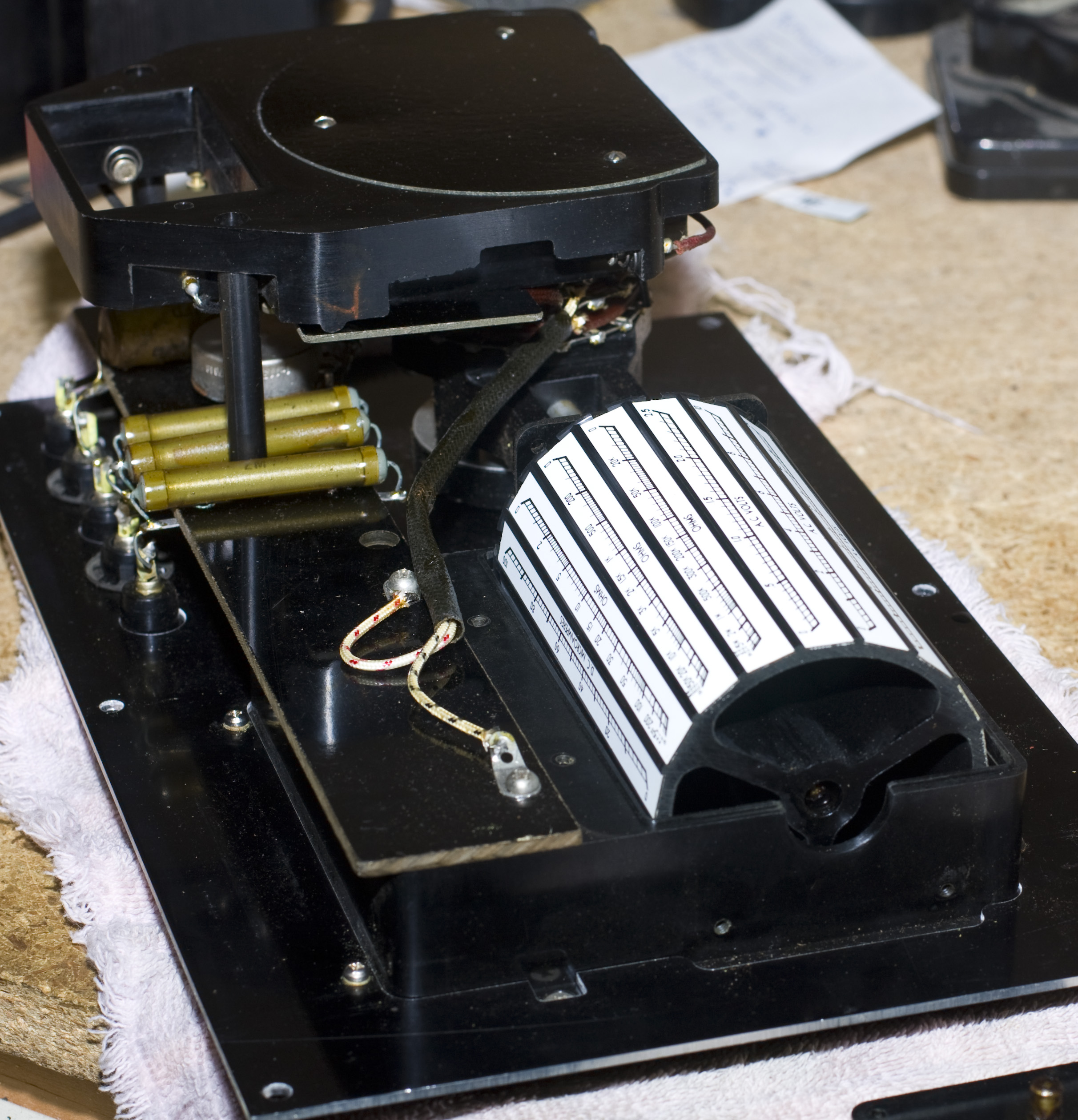 That's the meter housing removed from the panel. The front cover (with glass bezel) was removed and set aside. Now you can see the meter mask in front of the drum, and the meter movement itself.