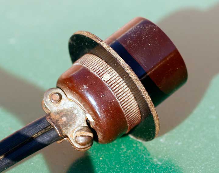 So far (and that's bad) the radio's been a dream. The knobs are plastic and all held by set screws so they pulled off cleanly and easily. Removed four screws on the bottom and the chassis slid out. A first for me: the speaker leads plug into the chassis so I didn't have to unsolder anything. The only real problem was the AC wire whose rubber insulation was disintegrating. The special plug on the end unscrewed nicely and stayed in once piece, so I was able to swap out a brown lamp cord and it looks fine.