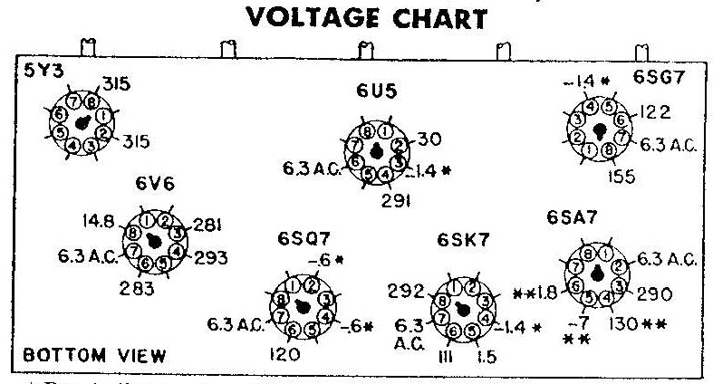 Finally a call to The Old Man, who directed me to the schematic of the transformer. There are numerous taps off the primary; maybe a previous owner had the radio set up for a different line voltage. That's what it turned out to be. I hadn't noticed it before, if on the top of the transformer there's a rotary switch and a little indicator with various voltages. Previous Owner had it set to 150. I rotated it back down to 110 and read voltages. Now I was back to acceptable (albiet a little hot) voltages.