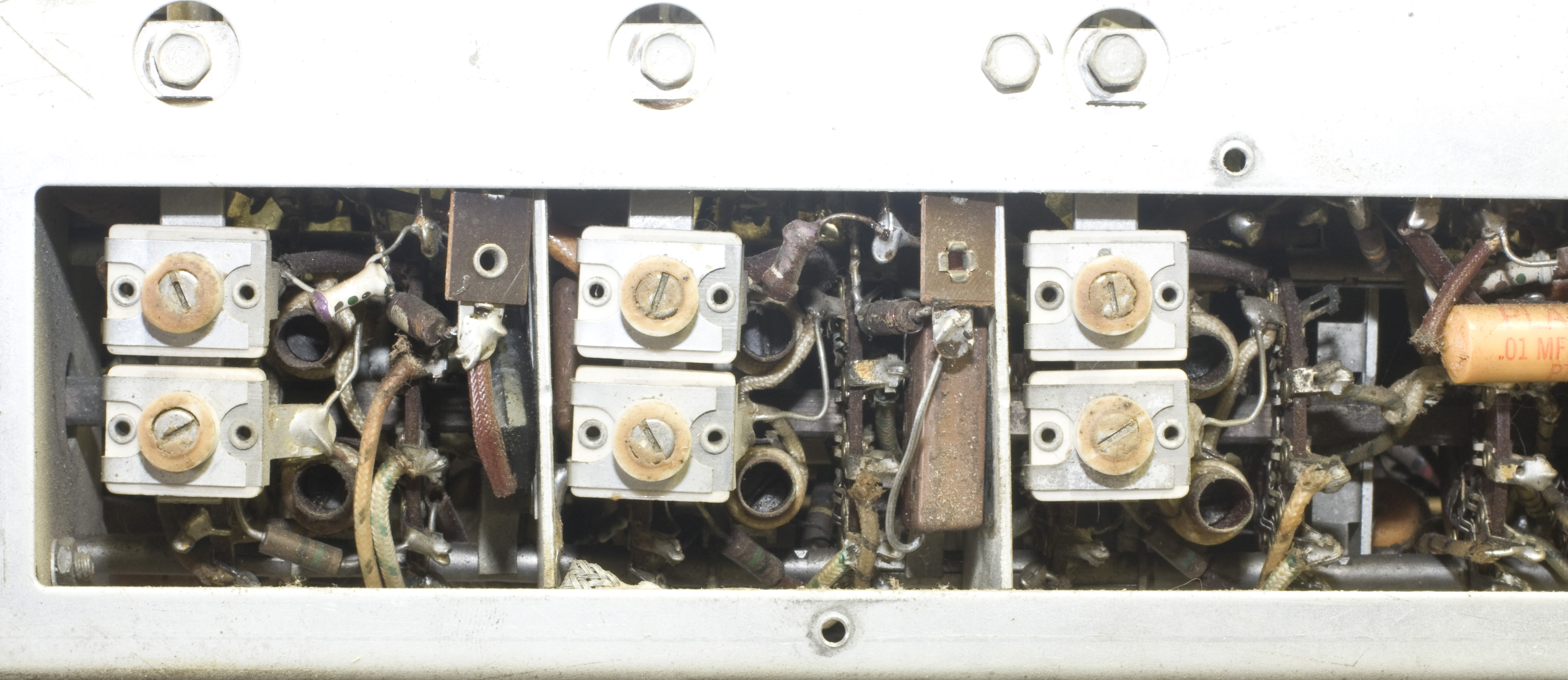 For quote some time I was having trouble with the audio. I'd turn it on and it would be dead. I'd switch between Send and Receive and after a couple of throws, audio would kick in. This got more difficult and finally ceased to work at all. I suspect the switch is bad. Due to the way the radio is made, the front panel is not the front of the chassis; most things stick through holes cut into the face plates but are mounted onto the chassis front (the headphone jack is the big exception here). If you want to remove a switch, you have to pull the chassis from the cabinet, then remove the front panel, and then you can access the switch. Oy vey.