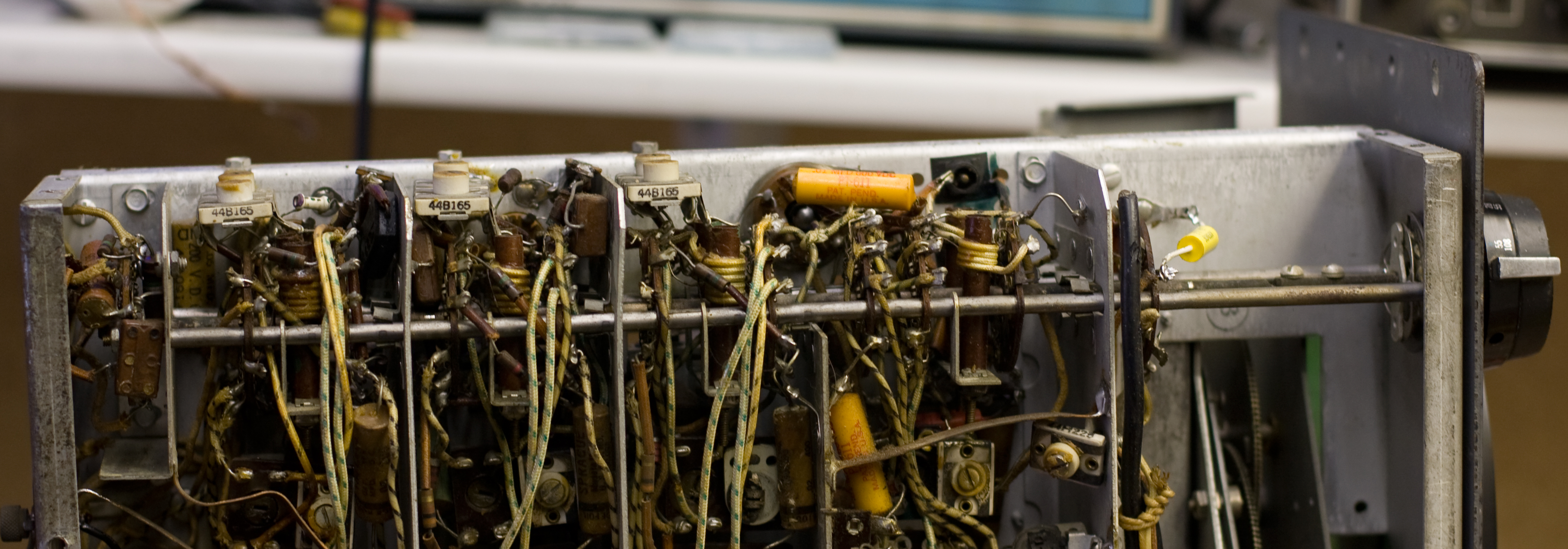Now what? Not sure. Both RF stages are on top of and obscured by the band switches and various trimmers, so space is particularly tight. I had a hell of a time even touching the grid on the 2nd RF tube, so I'm not 100% sure I got it (but I'm 99% sure). I am sure that I get sound when I touch the plate on the 2nd RF tube.