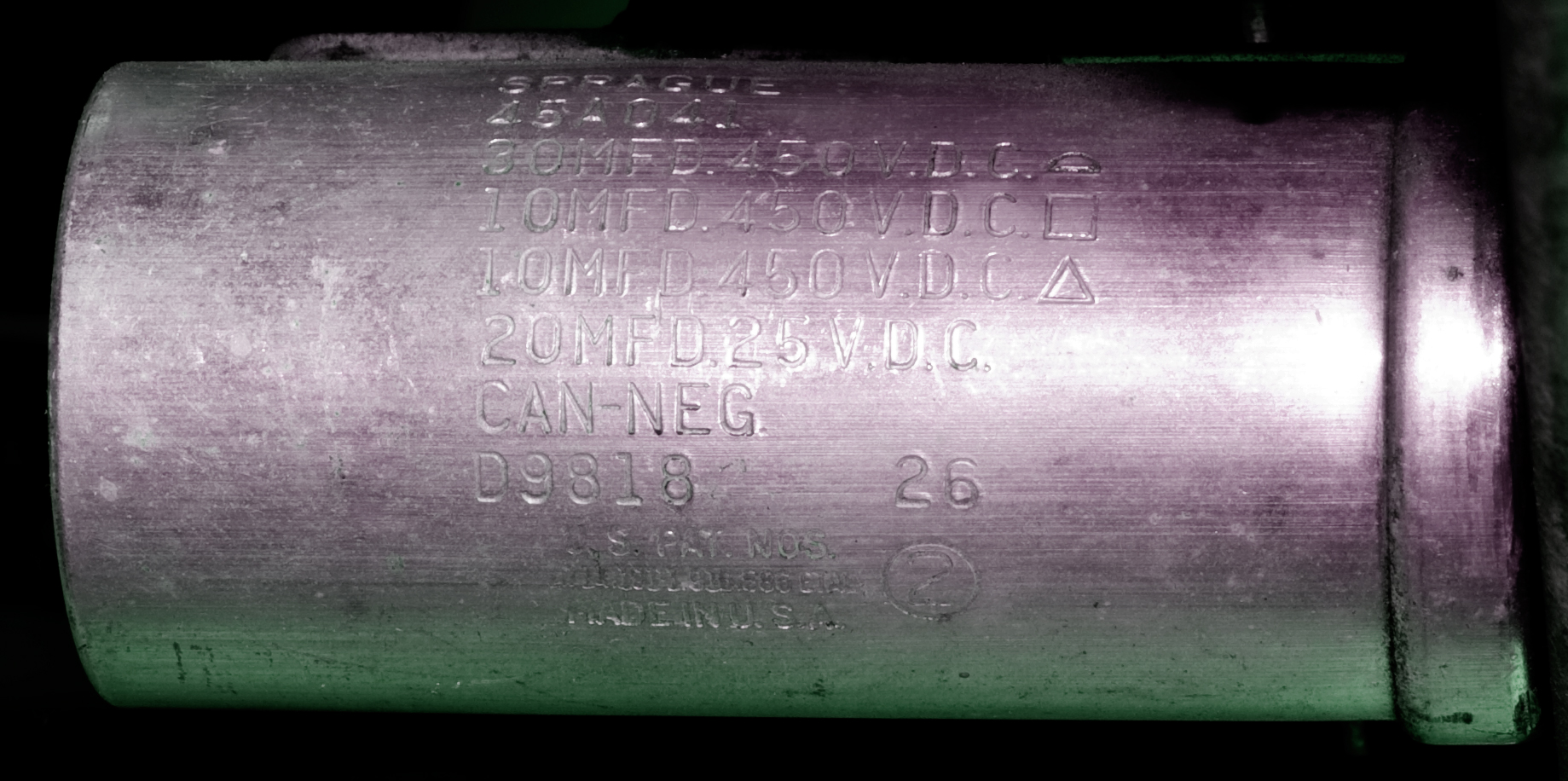 They're in a can. A four-stage can, though if I read it right, the two 10µF stages are run parallel to produce 20. Either way, ugh. This is what has derailed me on the Zenith. I had removed it and made a mess of documenting what-went-where, and now I'm paying for my sins trying to reconstruct it. Or actually, not reconstructing it, but setting it on the shelf so I could screw up this project in the meantime.