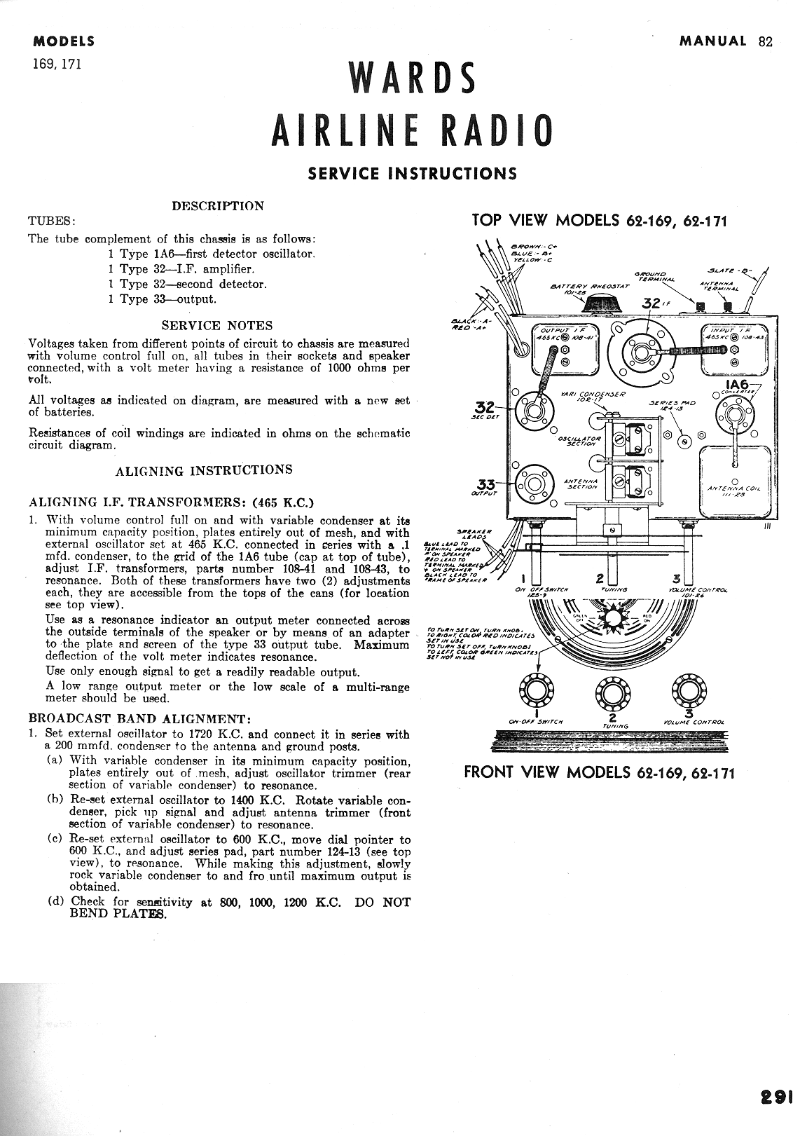 I don't have much info on this yet so no interesting background. NostalgiaAir has the schematic from the Ryder Perpetual Troubleshooter's Manual. Brian McAllister has a nice scan of various Airline schematics, and there's an old website from "Herb" that has a photo of the radio with its cabinet.