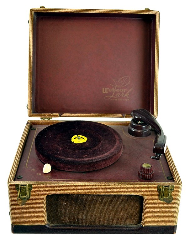 Webcor made a number of record players, which they called "Fonografs," concurrently with their wire and tape machines. I don't own any. I've got a half-an-eye out for their Lark, which is the record player Jack Lemmon had in his ice house in the movie Grumpy Old Men (before it was pushed into the lake by Walter Matthau).