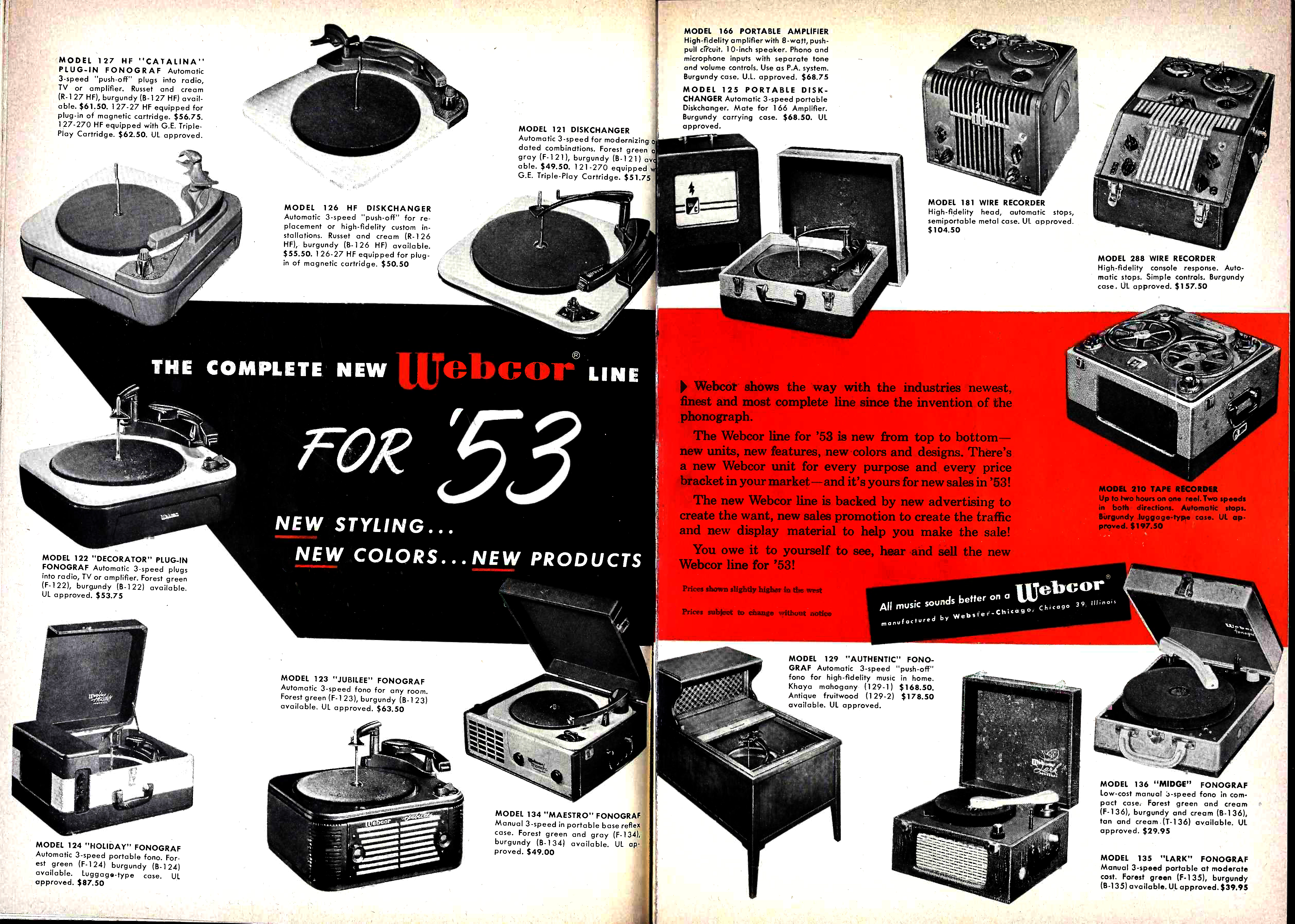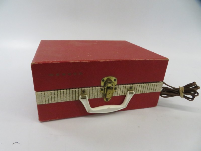 Portable | Red exterior, cream inside Afaialble in green and white, gold and white | Stereo model. Stereo model. Manual turntable. Removable speakers. Specs from Billboard Magazine Sept 14, 1959, p. 16 | $39.95 |