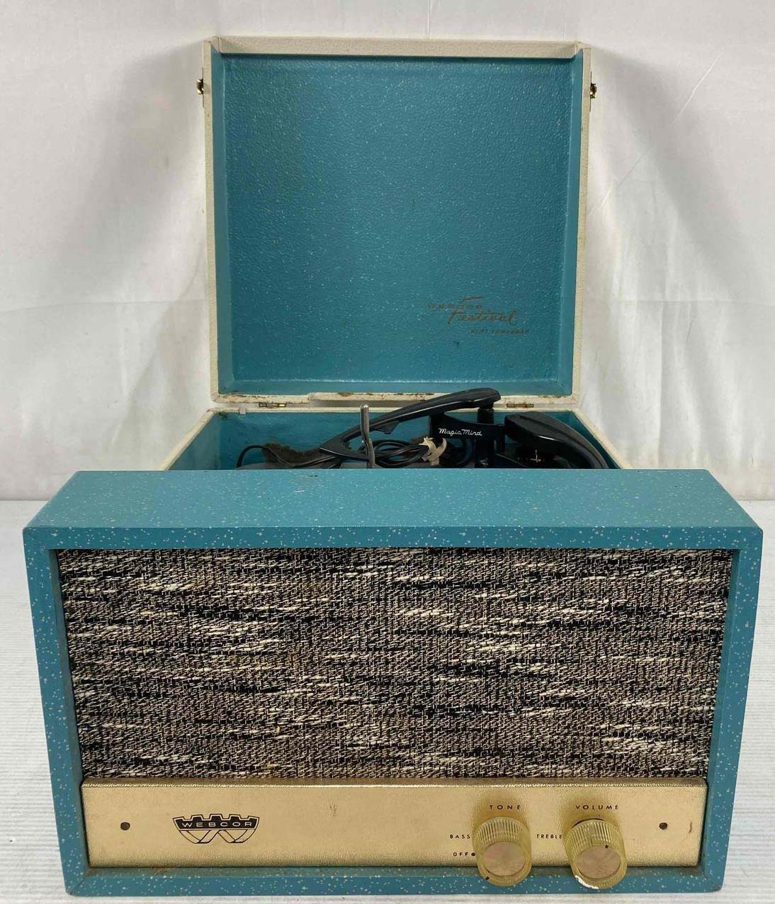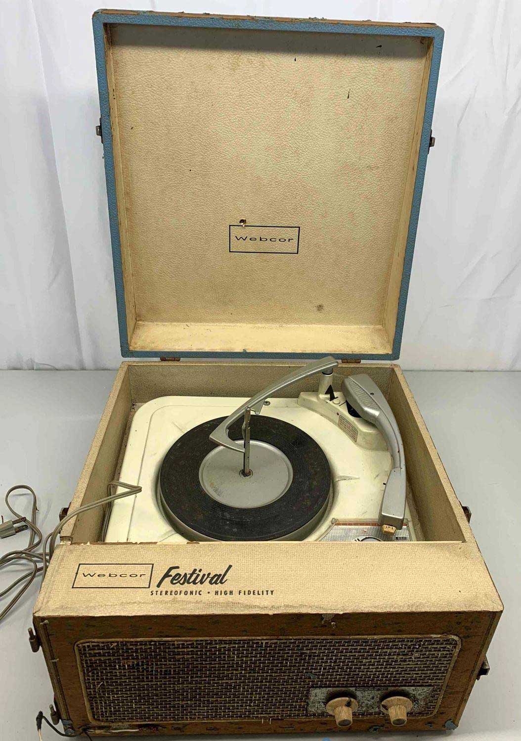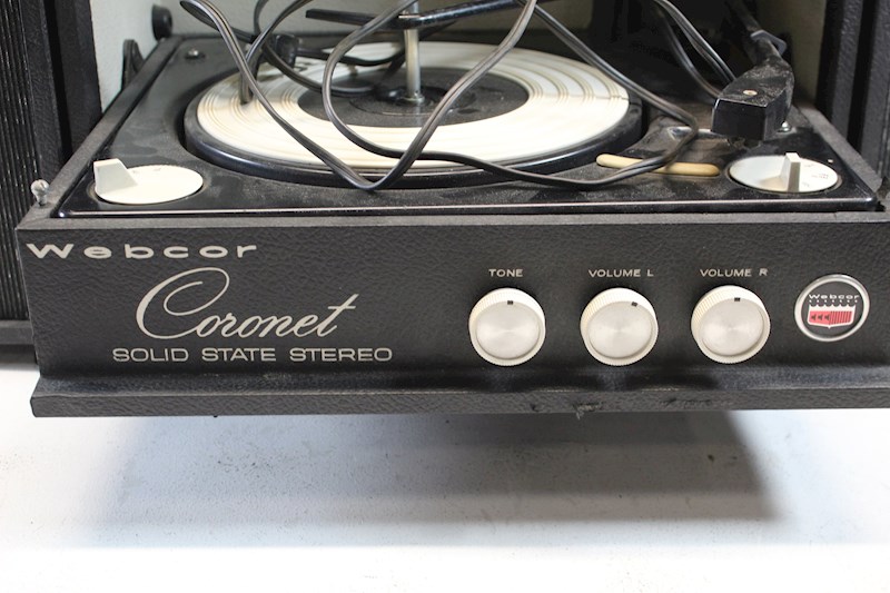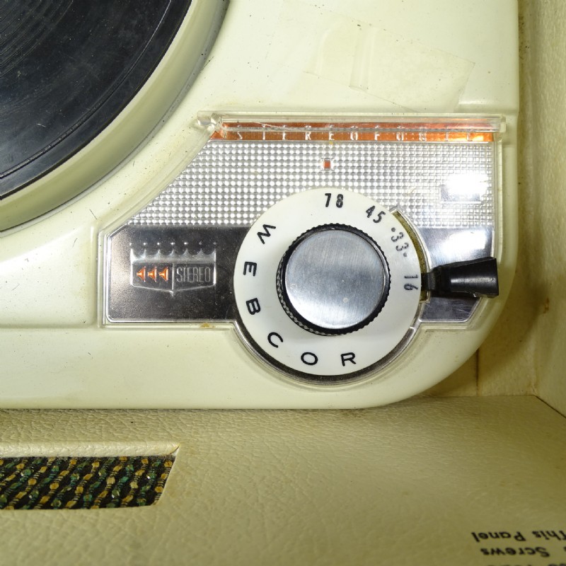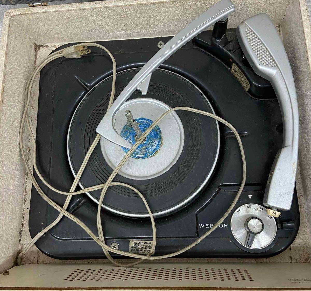 Portable | Two speakers: one in cabinet, one detachable. Similar to Models 1113 and 1213 (manual record player), Model 1152 (automatic changer). 2-tube. 25W. SAMS Photofact 607, Folder 11 (electronics); Photofact 447, Foler 13 or Webcor 184 (changer). |