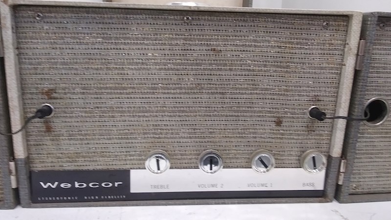 Portable | Two speakers: one in cabinet, one detachable. Similar to Models 1113 and 1213 (manual record player), Model 1252 (automatic changer). 2-tube. 25W. SAMS Photofact 607, Folder 11 (electronics); Photofact 447, Foler 13 or Webcor 184 (changer). |