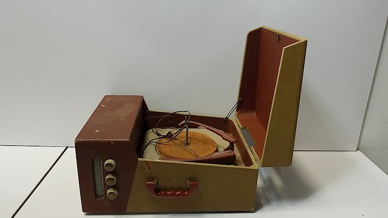 Portable | Two-tone gray or burgandy | Manual only (no changer) 3 tube, 25W SAMS Photofact Set 205, Folder 12 |