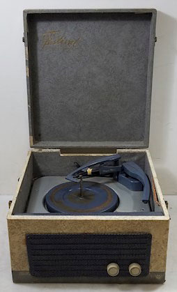 Portable | Available in blue and white, ebony and white | Stereo model. Manual turntable. Specs from Billboard Magazine Sept 14, 1959, p. 16 | $39.95 |
